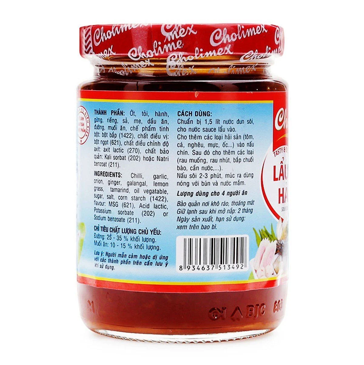 – Cholimex seafood hot pot seasoning is very convenient for cooking hot pot dishes, delicious and aromatic sour soup without having to prepare broth because it combines enough spices such as chili, garlic, onion, ginger, galangal, lemongrass, tamarind, sugar, salt, etc.