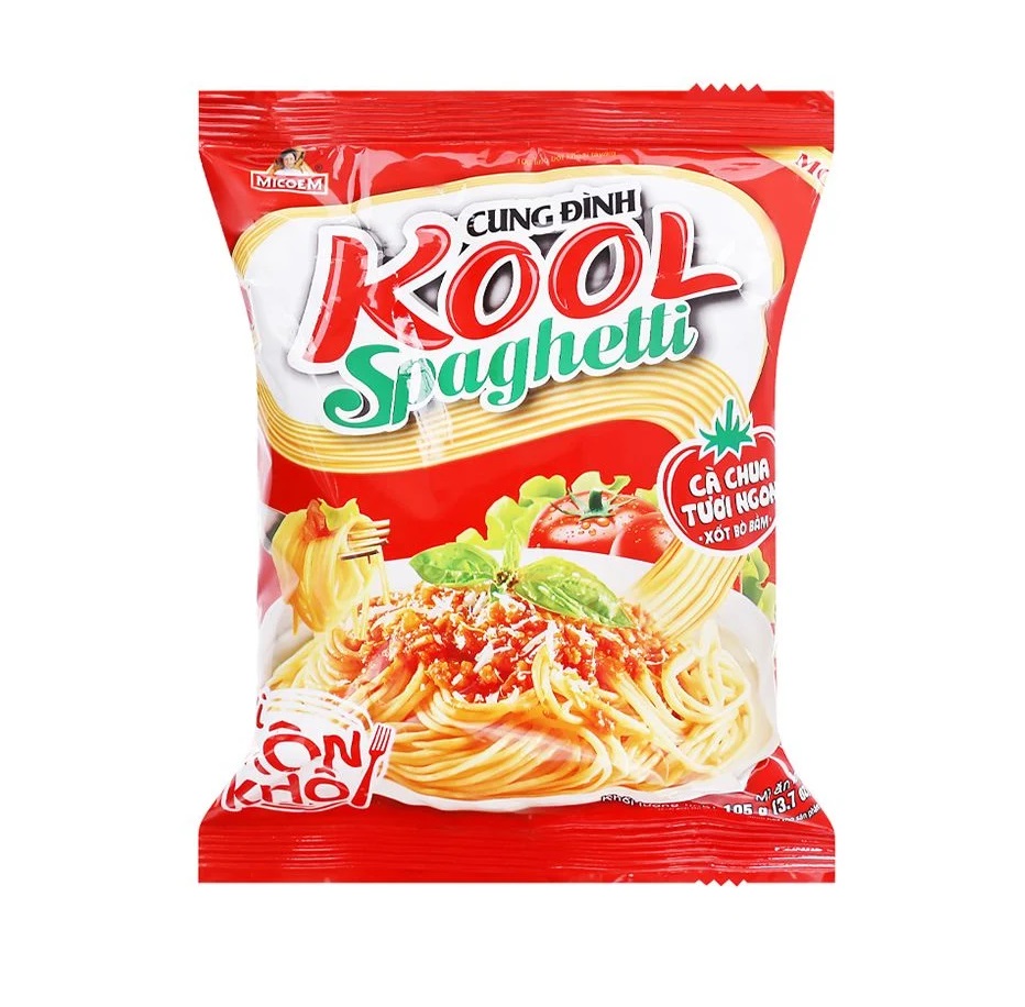 Kool Spaghetti Palace Noodles (with minced beef sauce packet) crispy yellow noodles mixed in Kool Spaghetti Palace Noodles sauce with tomato and minced beef, rich in aroma. Kool Spaghetti Palace Noodles (with minced beef sauce packet) is convenient, fast, and an attractive choice for a quick and simple meal that is still full of nutrients.
