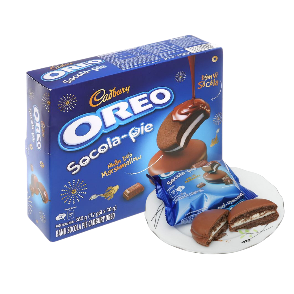 Cadbury Oreo Chocolate Pie has a soft cake layer with sweet melted chocolate on the outside to an attractive chewy filling inside. The ingredients in the cake help you supplement the vitamins and minerals needed for your body every day.
