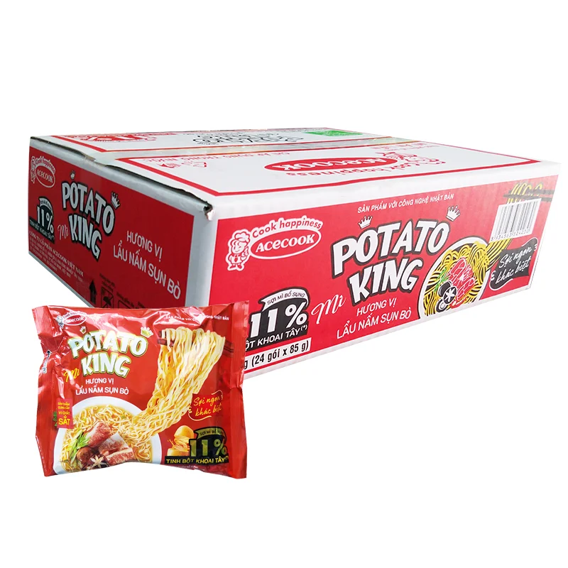 King Potato Noodles with Beef Cartilage Mushroom Hot Pot 85G with standard potato starch content will produce smooth, fresh noodles combined with a rich, delicious soup flavor, a variety of vegetables served with a large amount, attractive, bringing a different chewy and delicious taste.